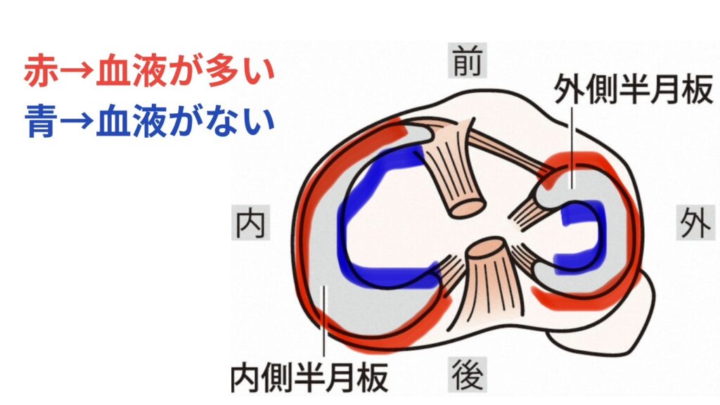 半月板の外縁は血液が豊富で、内縁は血液が少ないです。