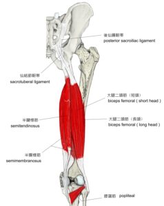 さらに、ハムストリングスの奥には坐骨神経が通っています。