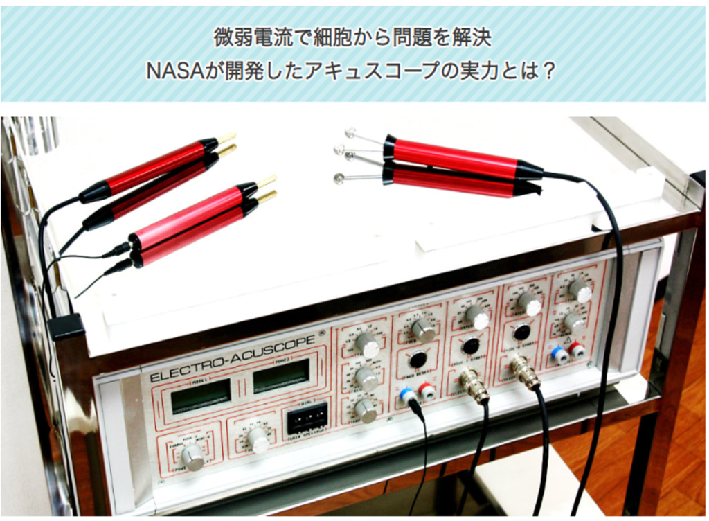アキュスコープはアスリートにも使用されるNASAが開発した微弱電流治療器で、筋肉・神経の状態を読み取り、負担のかかった部位を正確にケアできます。